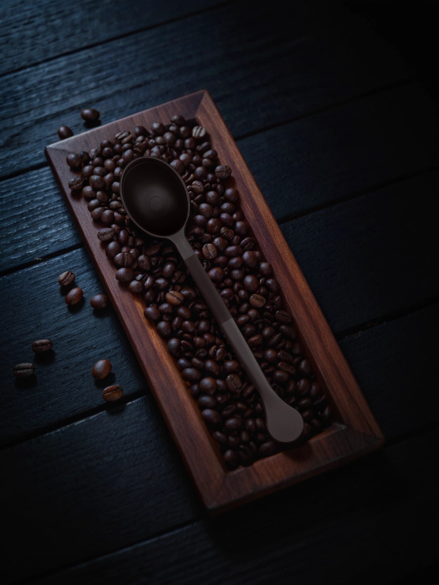 Десертная ложка из нержавеющей стали с титановым покрытием черного матового цвета. Этот стильный и функциональный аксессуар станет незаменимым помощником на вашей кухне или в вашем баре.