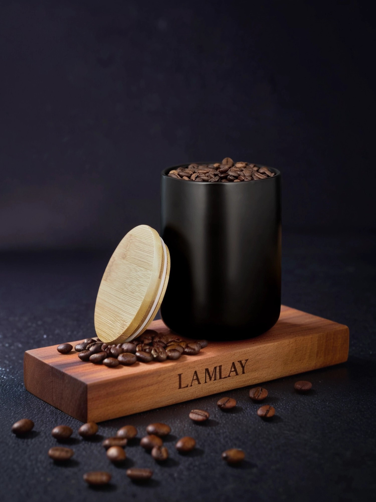 Банка изготовлена из керамики и дерева, что обеспечивает долговечность и надежность использования. Деревянная крышка в стиле лофт герметично закрывает банку, сохраняя свежесть и аромат продуктов.